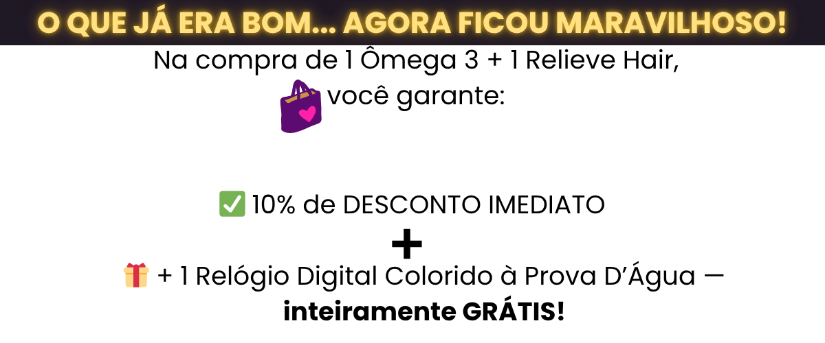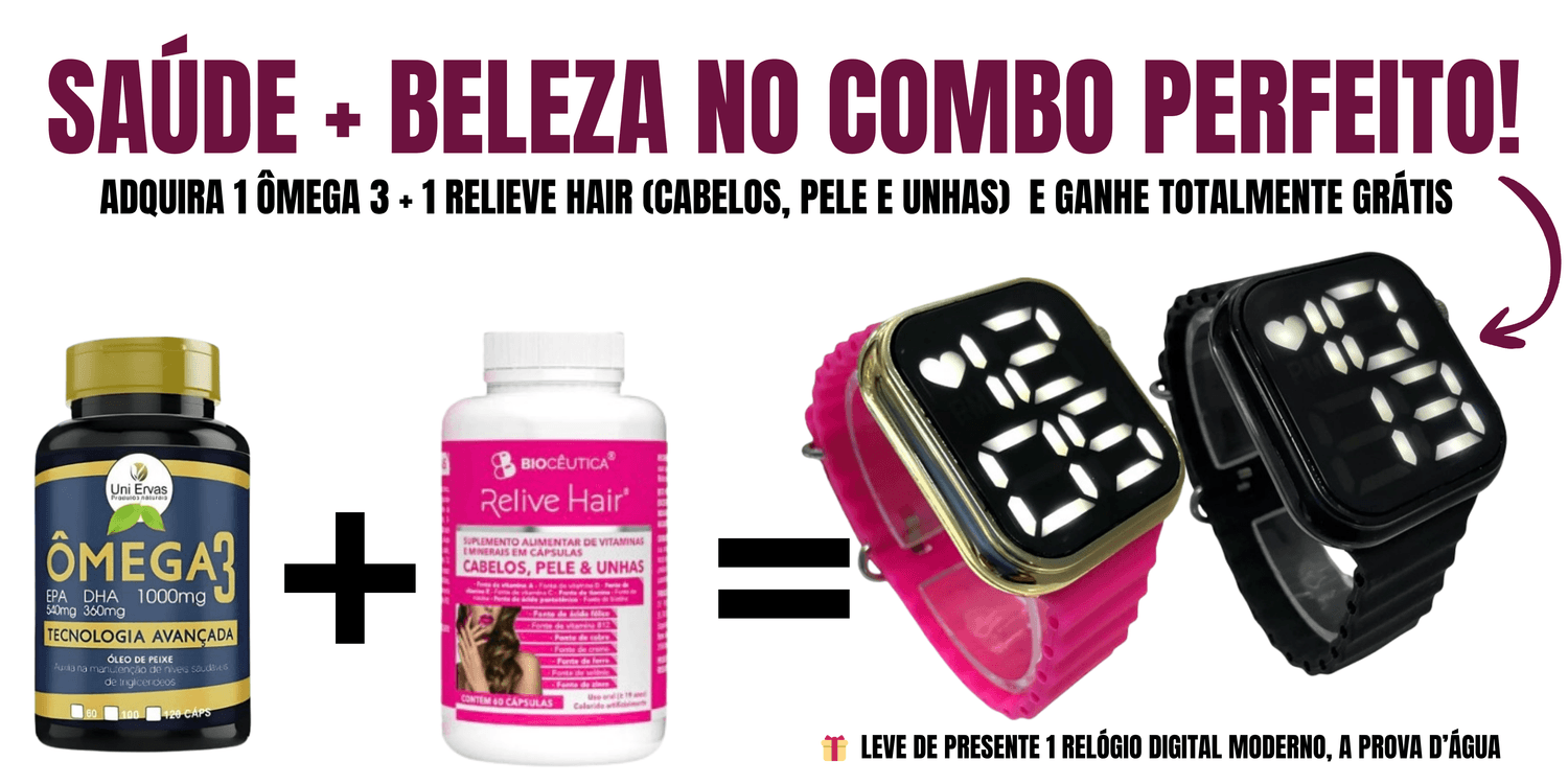 🎁 Atenção! Só clicando na caixinha antes de concluir o pedido você garante o Relive Hair com desconto + Relógio LED de presente!